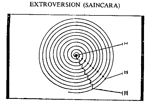 This manifestation of this observable world is called Saiṋcara or Extroversion during its movement from the subtle to the crude, and the movement of the created units and the world from the crude to the subtle is called Pratisaiṋcara or Introversion.